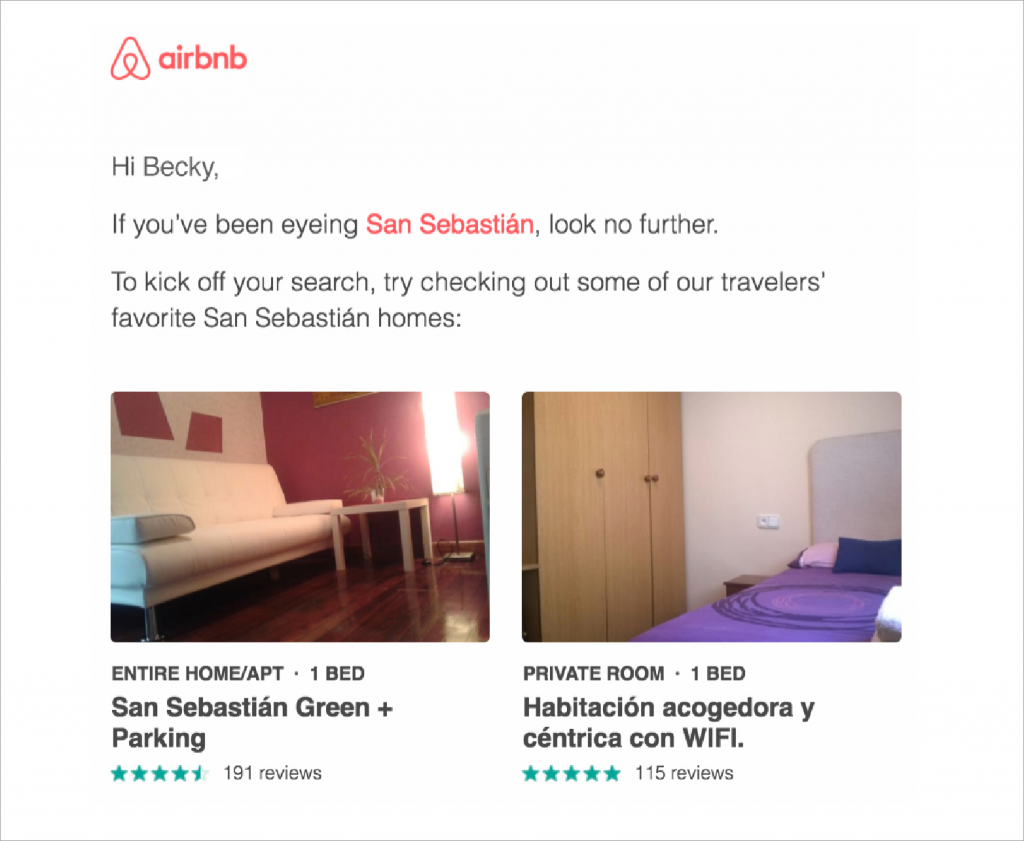 When Airbnb released a new update to its app in 2016, it announced it saying, “The newly updated Airbnb mobile app has personalization at its heart.” The app monitors the user’s trips, traveling preferences and plans, and uses that information to offer the utmost personalized experience.