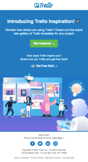 Check out this example from Trello – first sentence gets you right to the point of the whole email: