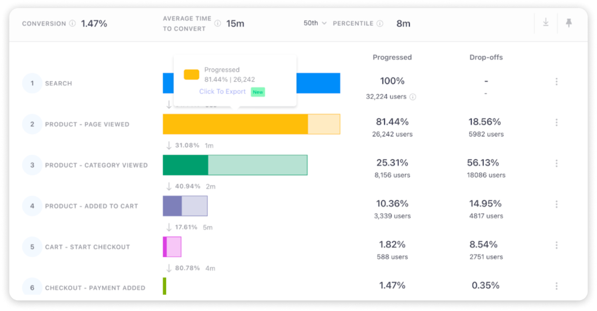 c. Conversion Time Insights: Focus on meaningful metrics by monitoring Conversion Time median and percentiles (50th, 75th, 90th), providing nuanced insights into funnel progression.