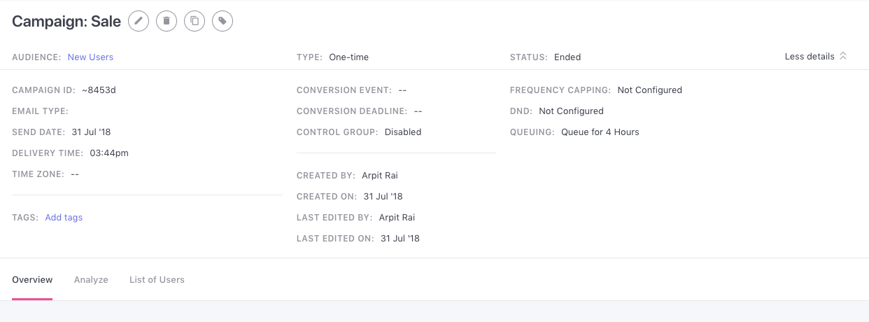 We have added a few more fields under the More Details part of the campaign report page. With this change, you can now see all the options you had chosen during the campaign creation process in the campaign report page itself without necessarily going to the campaign edit page.