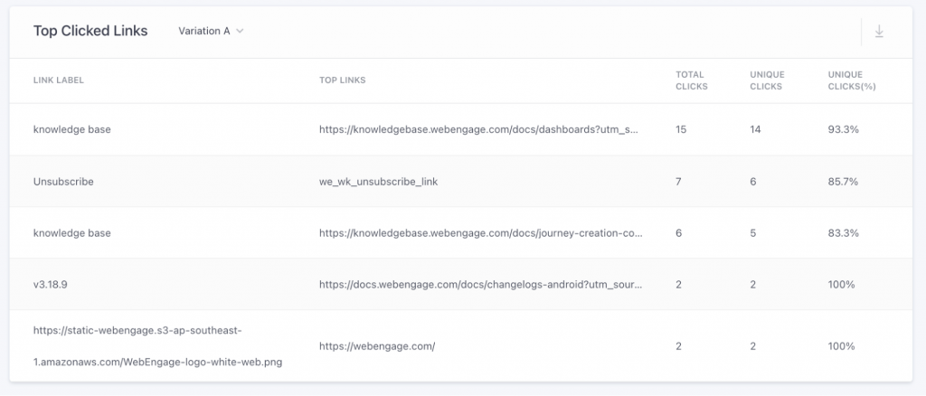 A new “Top Clicked Links” card has been added to the Overview page of a campaign that will help you analyze the distribution of clicks in your email campaigns.