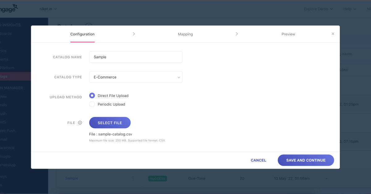 In continuation to our private release of Catalog and Recommendation Engine in February 2022, we have now introduced the option to upload your Catalog data directly from the dashboard.