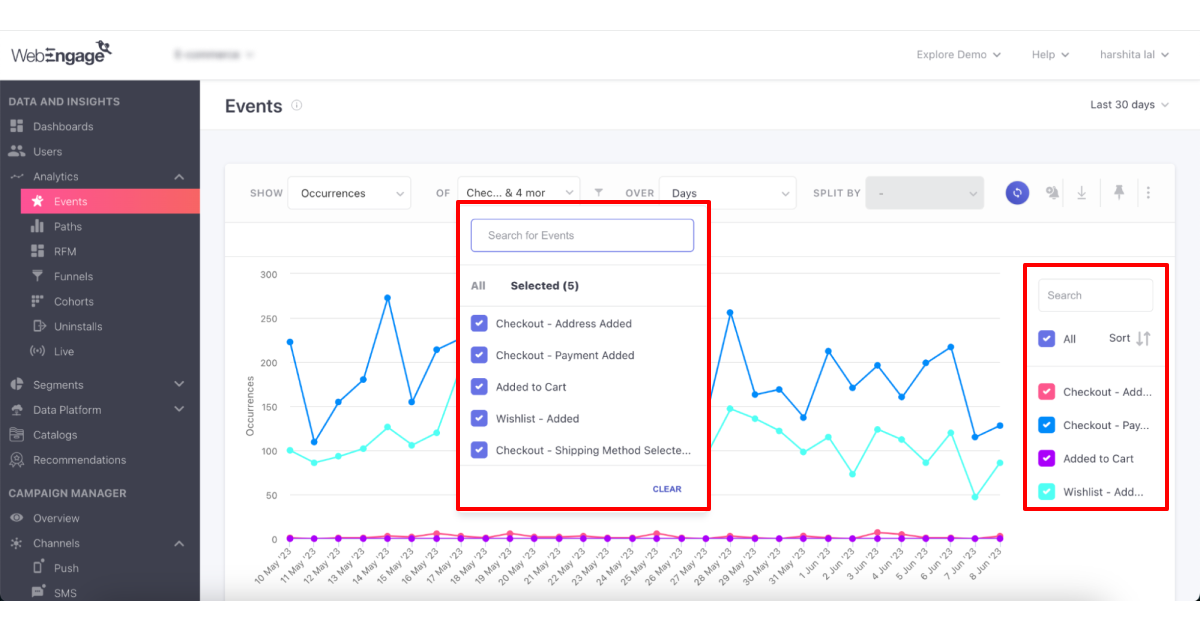 You can now analyze multiple events at the same time to identify correlations, identify patterns, and gain deeper insights into user behavior across these events, all in one place.