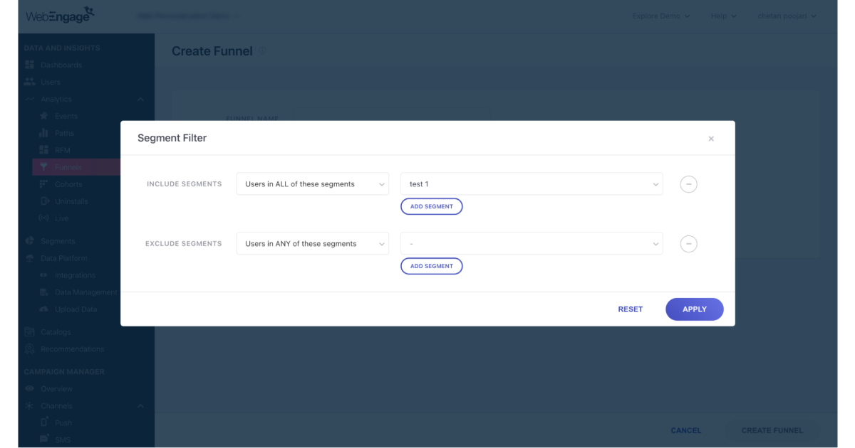 Now, filter your event and funnel analytics based on Lists and choose to include or exclude users from your analysis. For funnel analytics, you can also use user attributes as a filter.