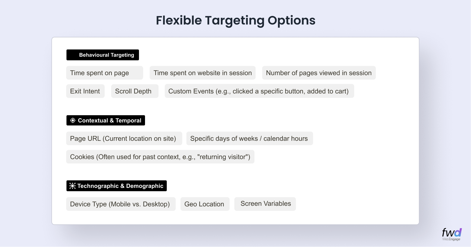- In-Session Real-Time Targeting: Trigger messages based on current behavior, like scroll depth, time on page, or exit intent.