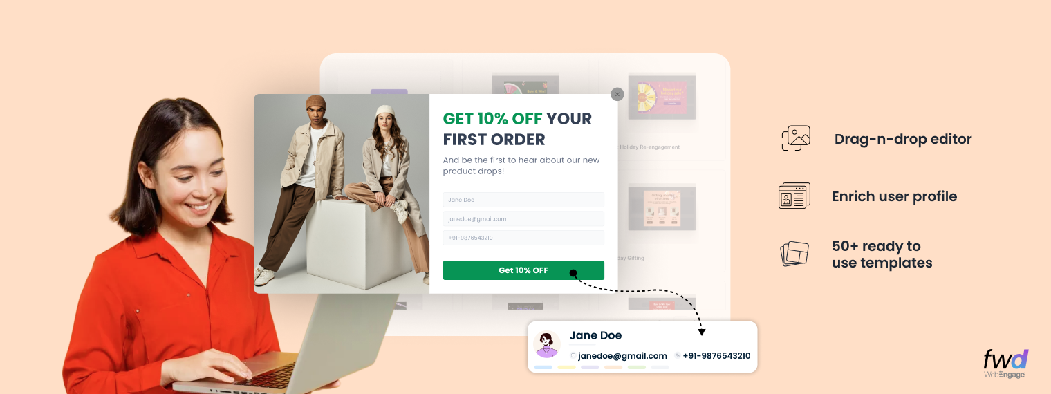 Don’t have a designer on standby? No problem. We have pre-loaded a library of high-converting, professional templates. Whether you need a festive sale announcement, a webinar registration prompt, or a simple “Welcome” discount, you can pick a template and customize it to match your brand guidelines in seconds.