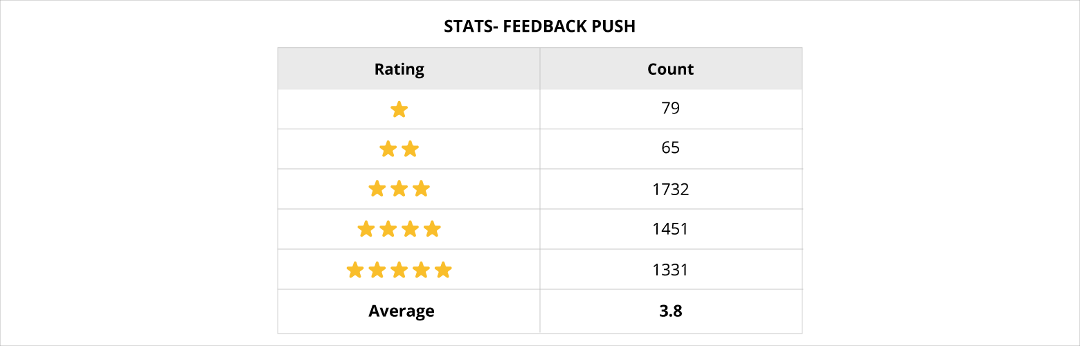 For feedback collection via push notifications, businesses must prompt users to rate recent purchases or experiences to get valuable insights. You do it via clickable survey links or quick-response options.