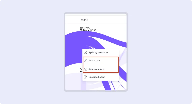 Explore niche user journeys by adjusting the number of rows in your Path analysis. By default, you’ll see 5 events, but you can add up to 20 rows to uncover uncommon Paths that may otherwise go unnoticed.