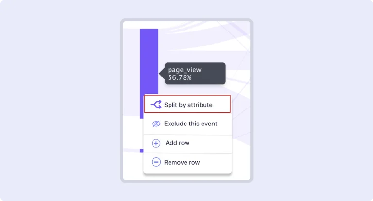 Break down events by specific attributes to get a detailed view of user behavior at each step. Each attribute split is treated as a unique event, offering deeper insights into how different user groups navigate your platform.