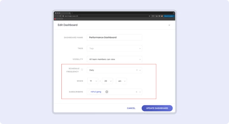 Stay updated effortlessly with scheduled email reports that deliver your dashboard data and pinned metrics directly to your inbox. This feature eliminates the need for frequent logins, ensuring you remain informed on key metrics and trends without disrupting your workflow, keeping your focus on decision-making and execution.