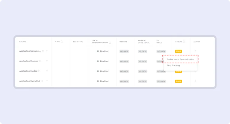 Handpick the latest events that matter most for your personalization efforts, keeping your database focused and relevant. This feature ensures you store only essential data, delivering highly targeted and effective personalized messages.