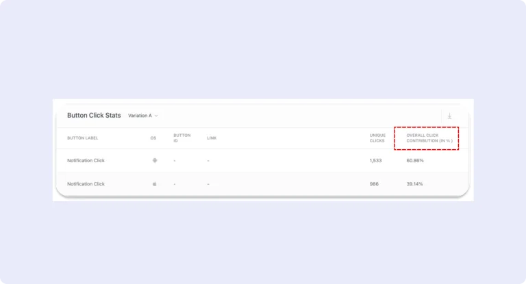 With this update, dive deep into button click distributions within push notifications. Analyze which buttons receive the most clicks, and optimize their placement and design to make sure your campaigns hit the mark!