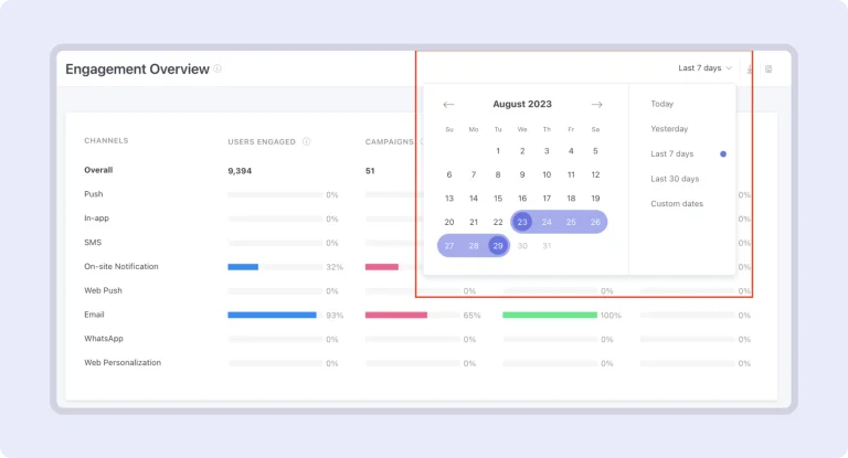 Custom Date Range: Channel Overview & Engagement Overview pages