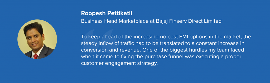 The availability of easy finance options through no-cost EMI options fuelled a wave of economic growth in metros and smaller towns, but posed a unique problem to the marketing team at BFES – the surge of traffic on the website wasn’t leading to a steady rise in conversion and revenue. With such a massive and diverse user base, they needed to work harder to ensure the incoming traffic kept moving towards a purchase.