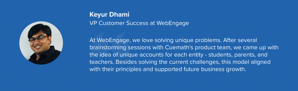 WebEngage’s long-term vision and experience with a plethora of ed-tech clients made them stand apart from all other marketing workflow tools. Their foresight proved to be a game-changer for Cuemath.