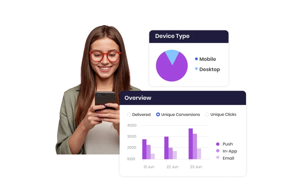 Capture user insights, engagement trends, and conversion analytics that help you with actionable insights and provide up-sell and cross-sell opportunities.
