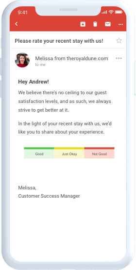 Enable guests to shape your services and define how you cater to them via intuitive NPS surveys. Features such as smart user segments and behavior-based targeting, along with timely automation, will help you design effective user experiences and take your customer satisfaction several notches up.